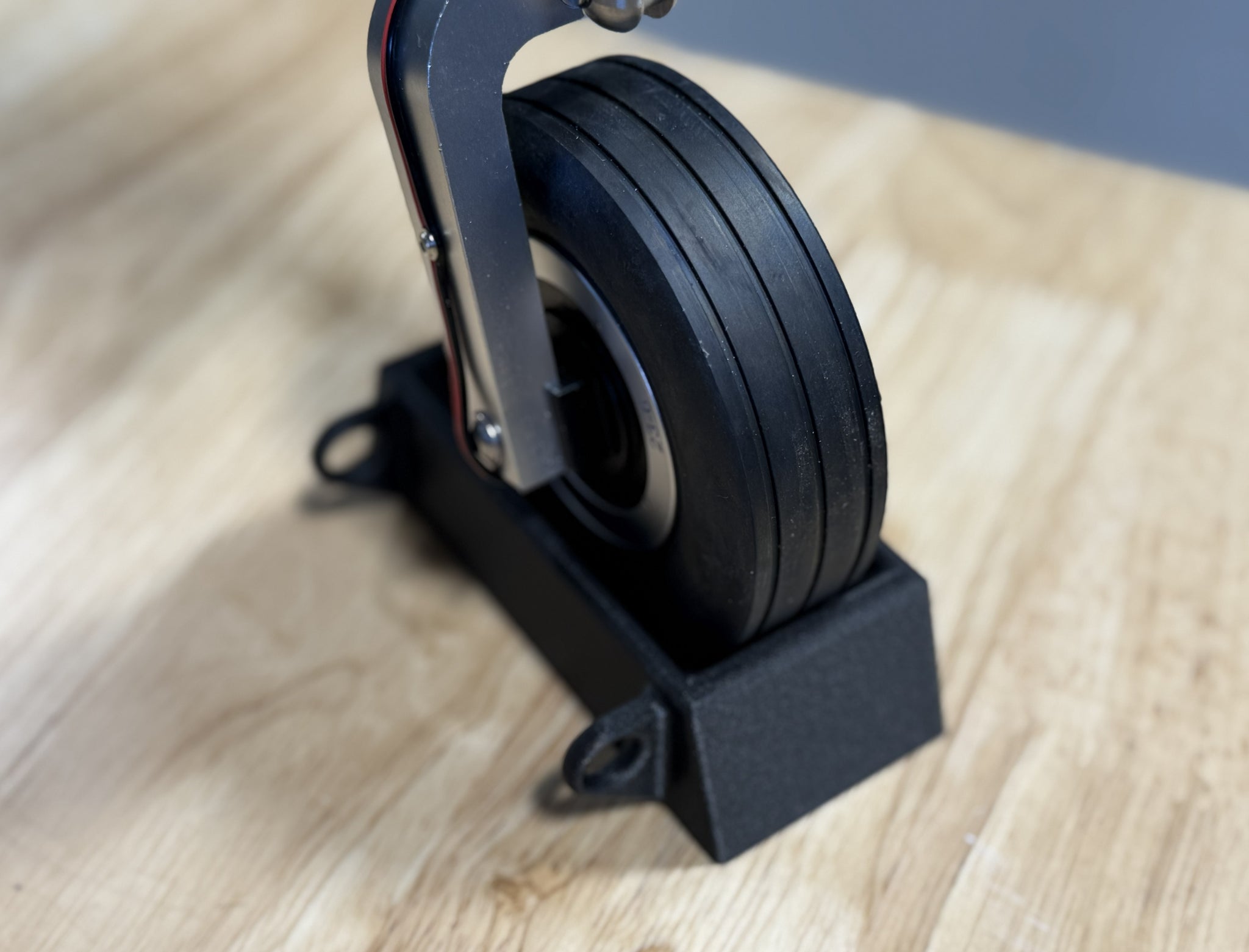 Keep your aircraft in place. These wheel chocks fit a 4" wheel. You can screw them in place or add two sided tape or even velcro bottom for removal. Each one has two strap loops. Our printed products are made of PETG Carbon Fiber for heat resistance and durability.